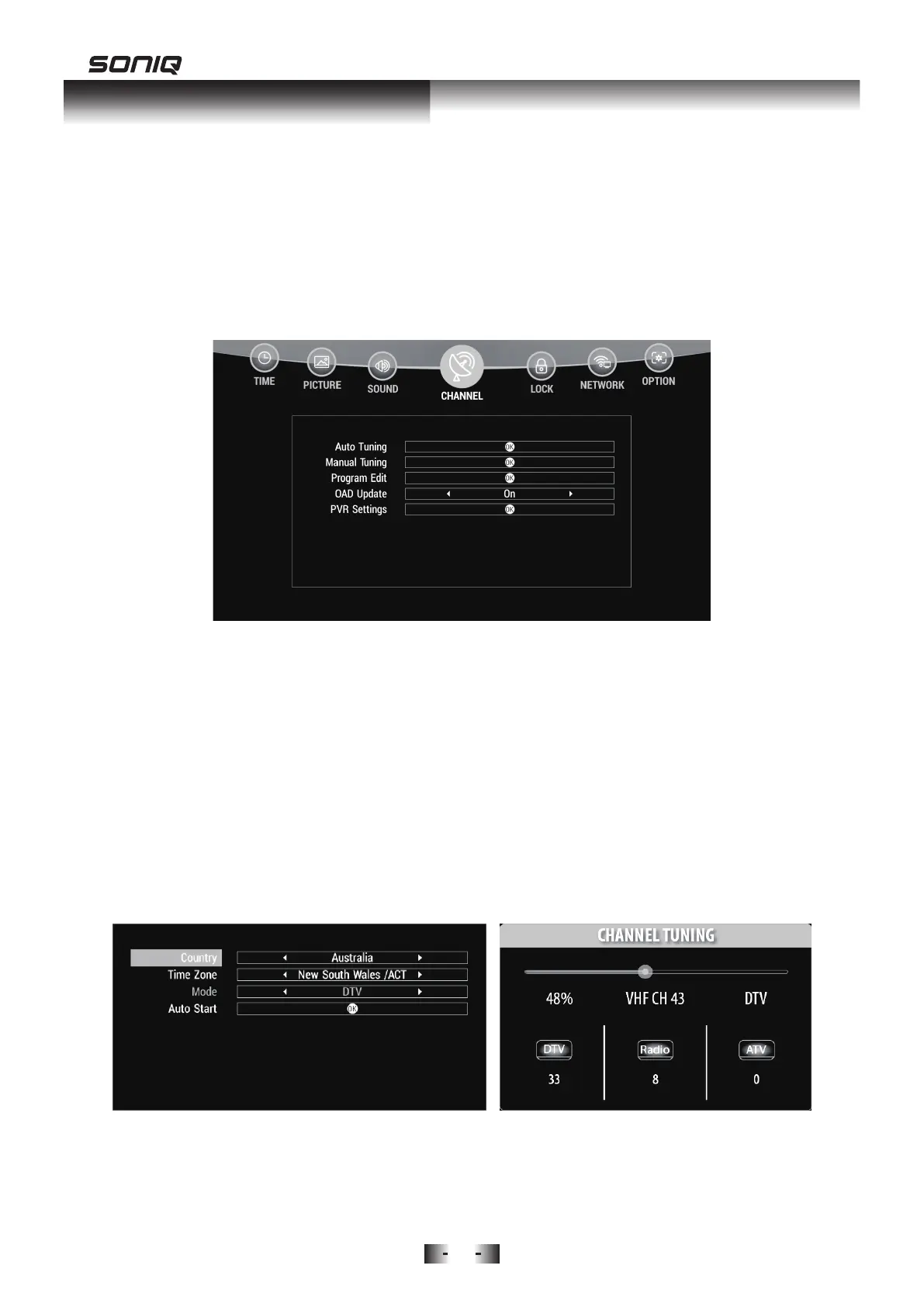 Press Up /Down Button to highlight Manual Tuning, then press OK to enter