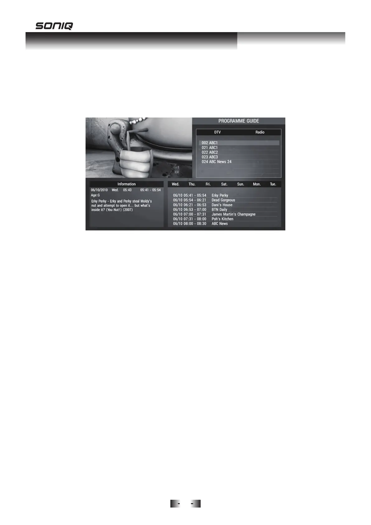 Press Navigation keys to switch between PROGRAMME, INFORMATION,