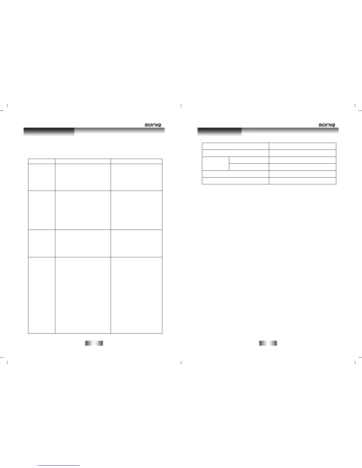 SONIQ HB413 - Troubleshooting; Specifications