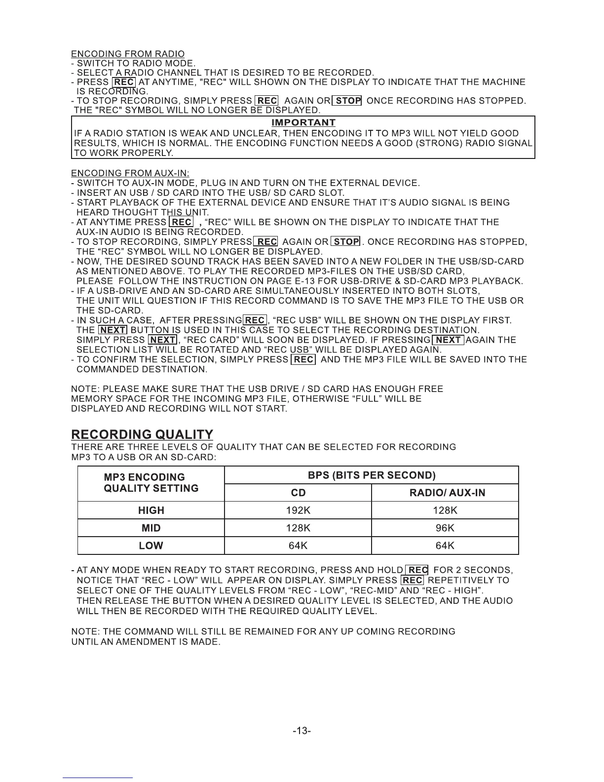 SONIQ QPC500B - Page 13