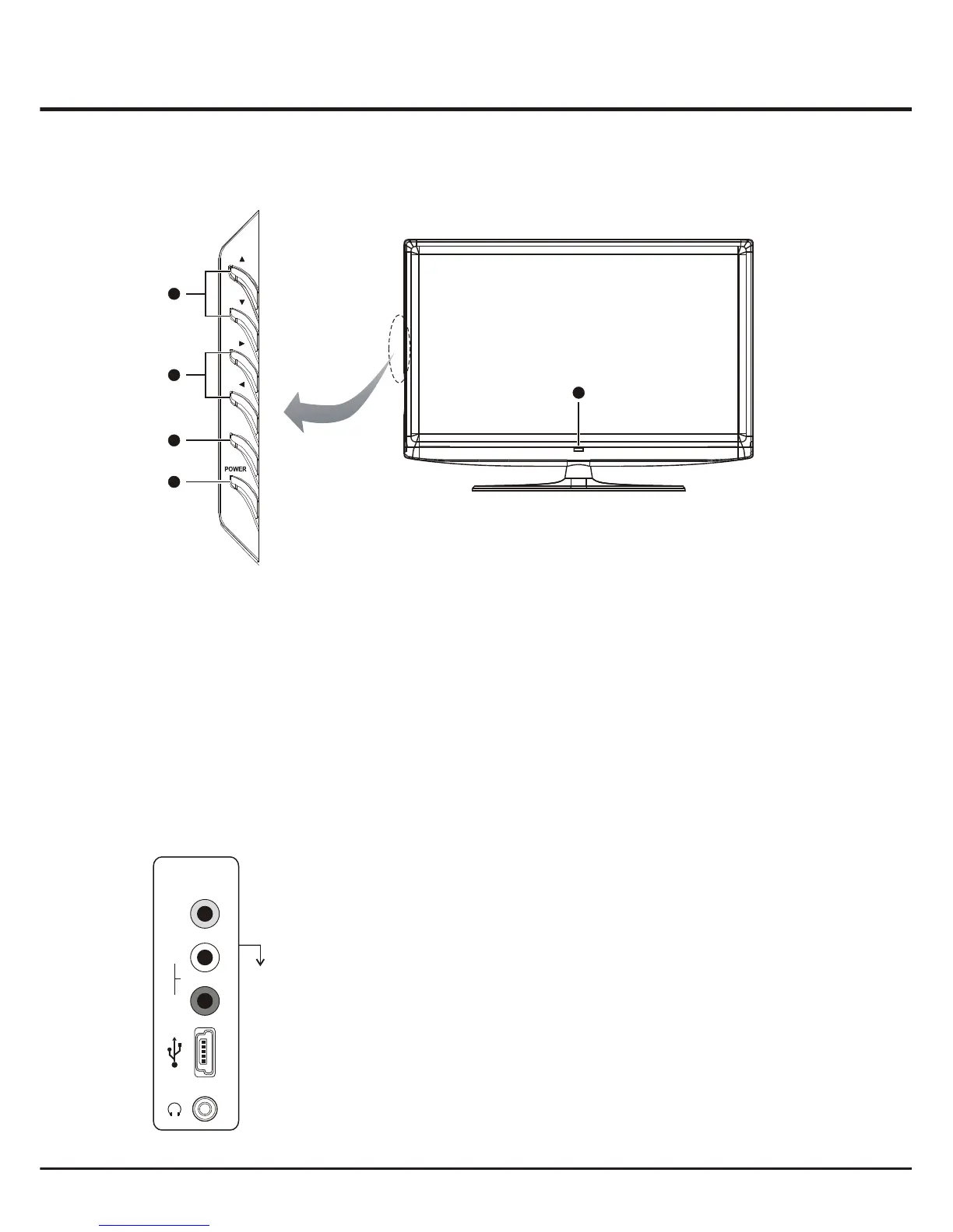 Note: The location and names of the function buttons and standby indicator on the TV may vary according to TV model.