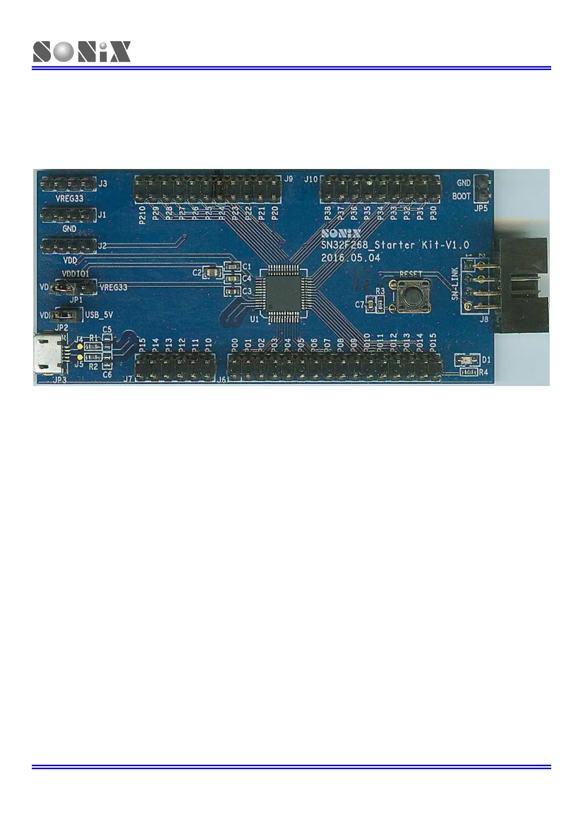 SONiX 32-bit MCU Starter-kit is an easy-development platform. It includes real chip and I/O connectors to input signal