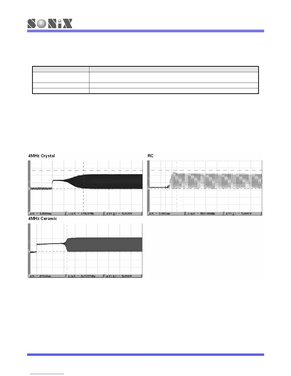 RC type oscillator’s start-up time is very short, but the crystal’s is longer. The oscillator start-up time decides reset time