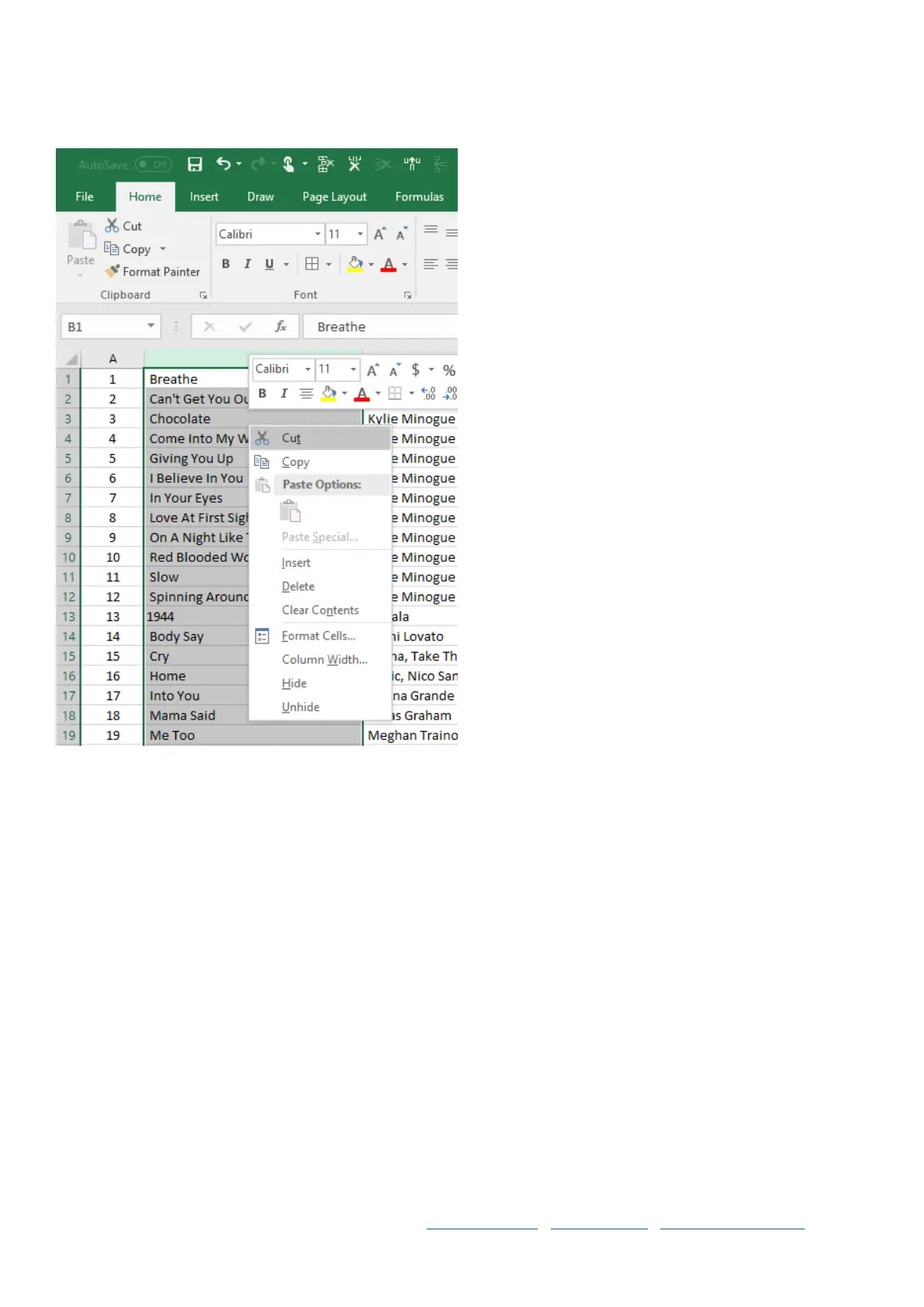 Firstly just highlight the B column where you have the song names, and select Cut (CTRL+X)