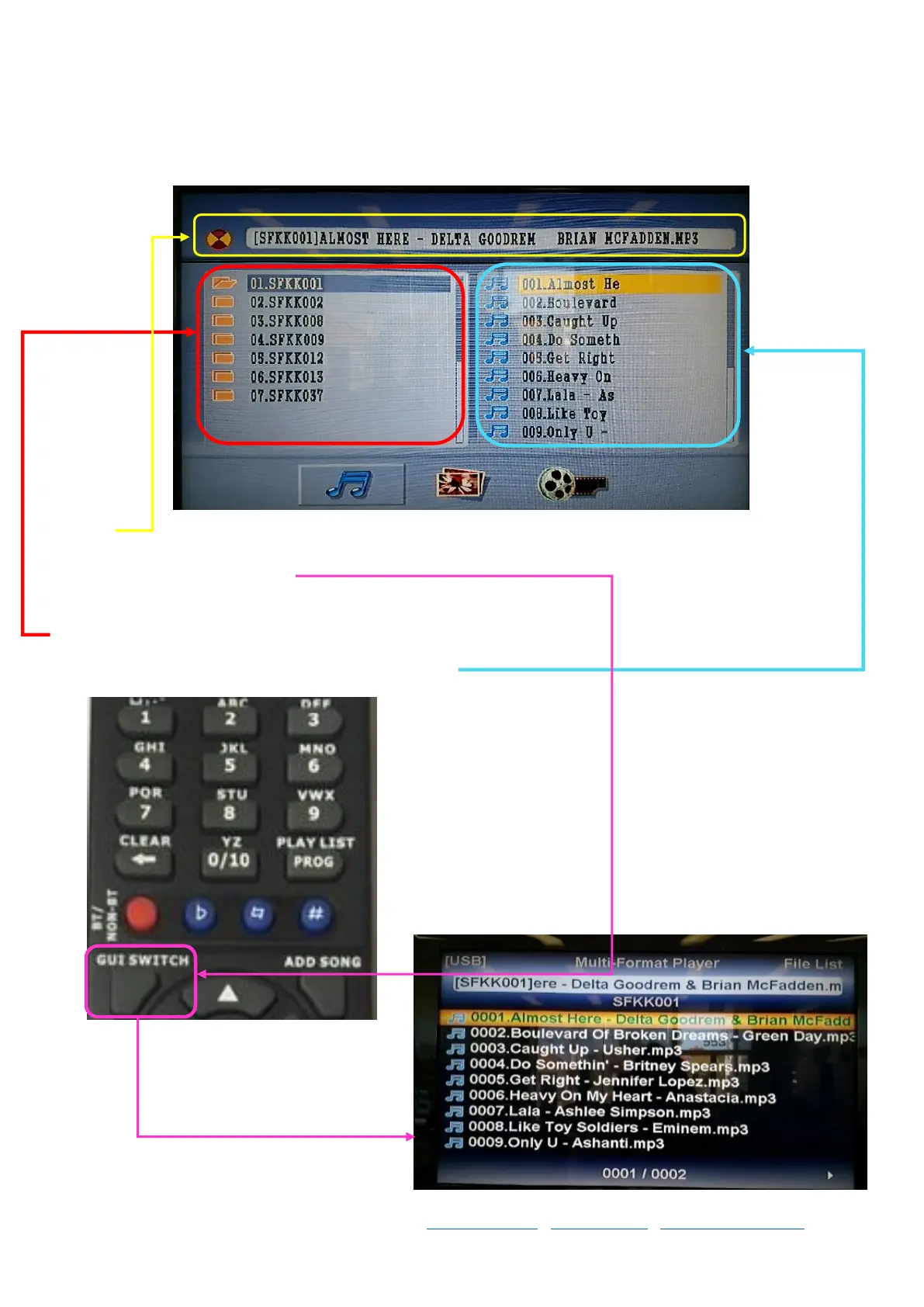 song titles in this view, click “GUI SWITCH” on the remote to switch to wide view