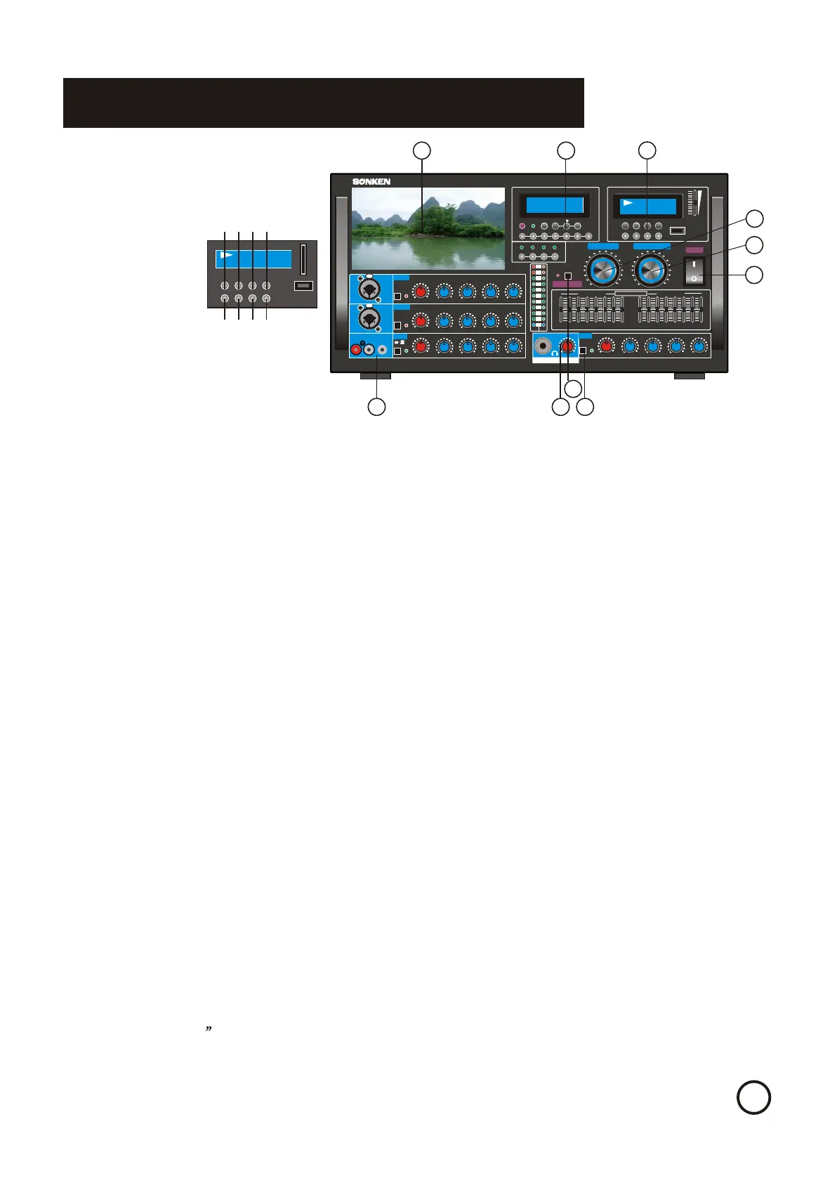 4.MICROPHONE MASTER VOL control - Adjusts the overall volume output for all three