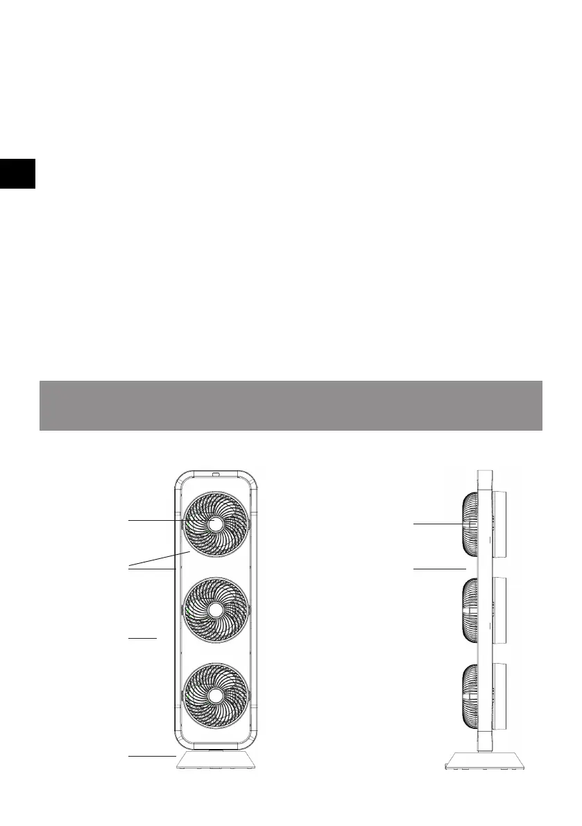 20. Do not place the fan or any parts near an open flame, stove or other heating appliance.