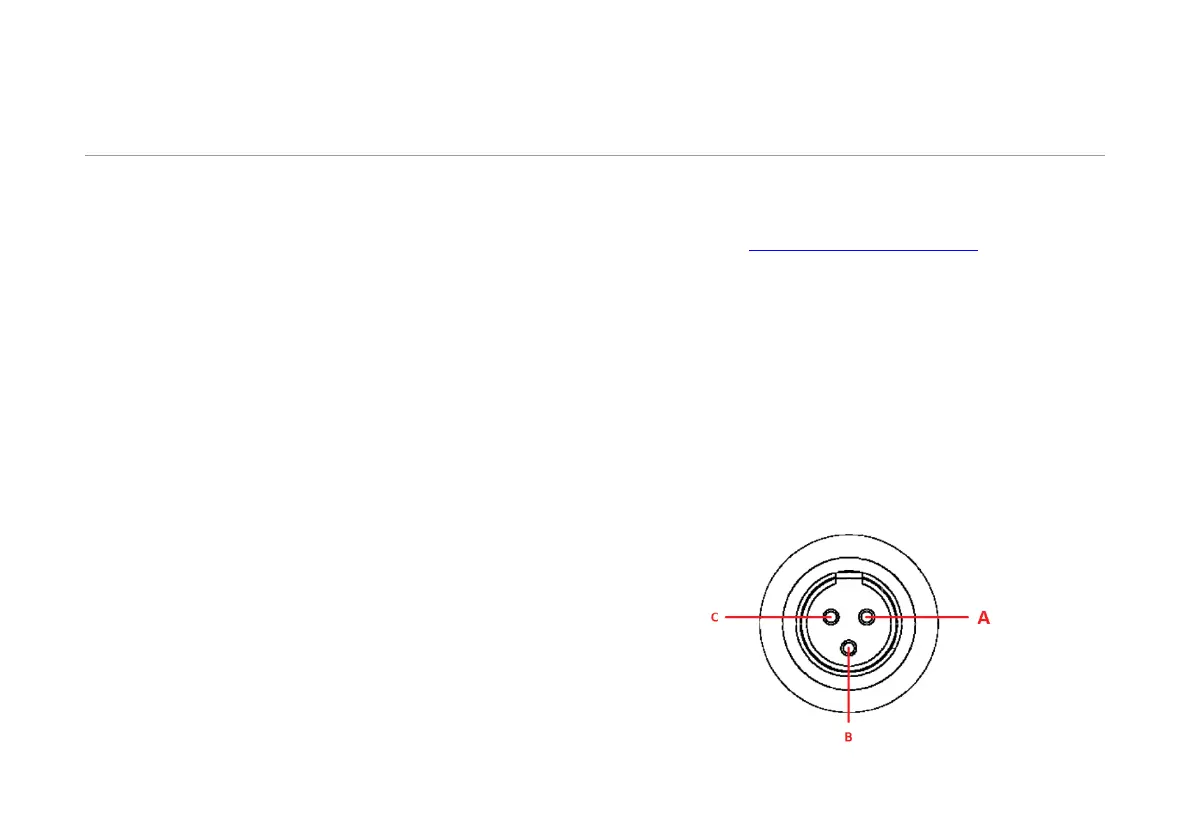 connection a 3 pole XLR mini connector can be used and depending the way your power amplifier should be powered, it can be wired