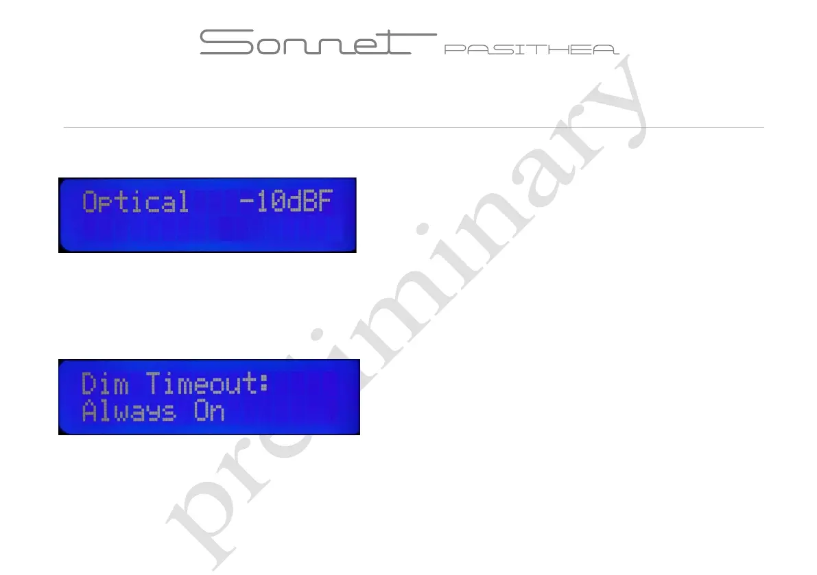 display is “on” can be changed from 1 to 60 seconds. To set the display “On time” press both front panel buttons on the Pasithea