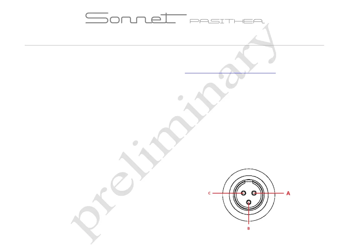 connection a 3 pole XLR mini connector can be used and depending the way your power amplifier should be powered, it can be wired