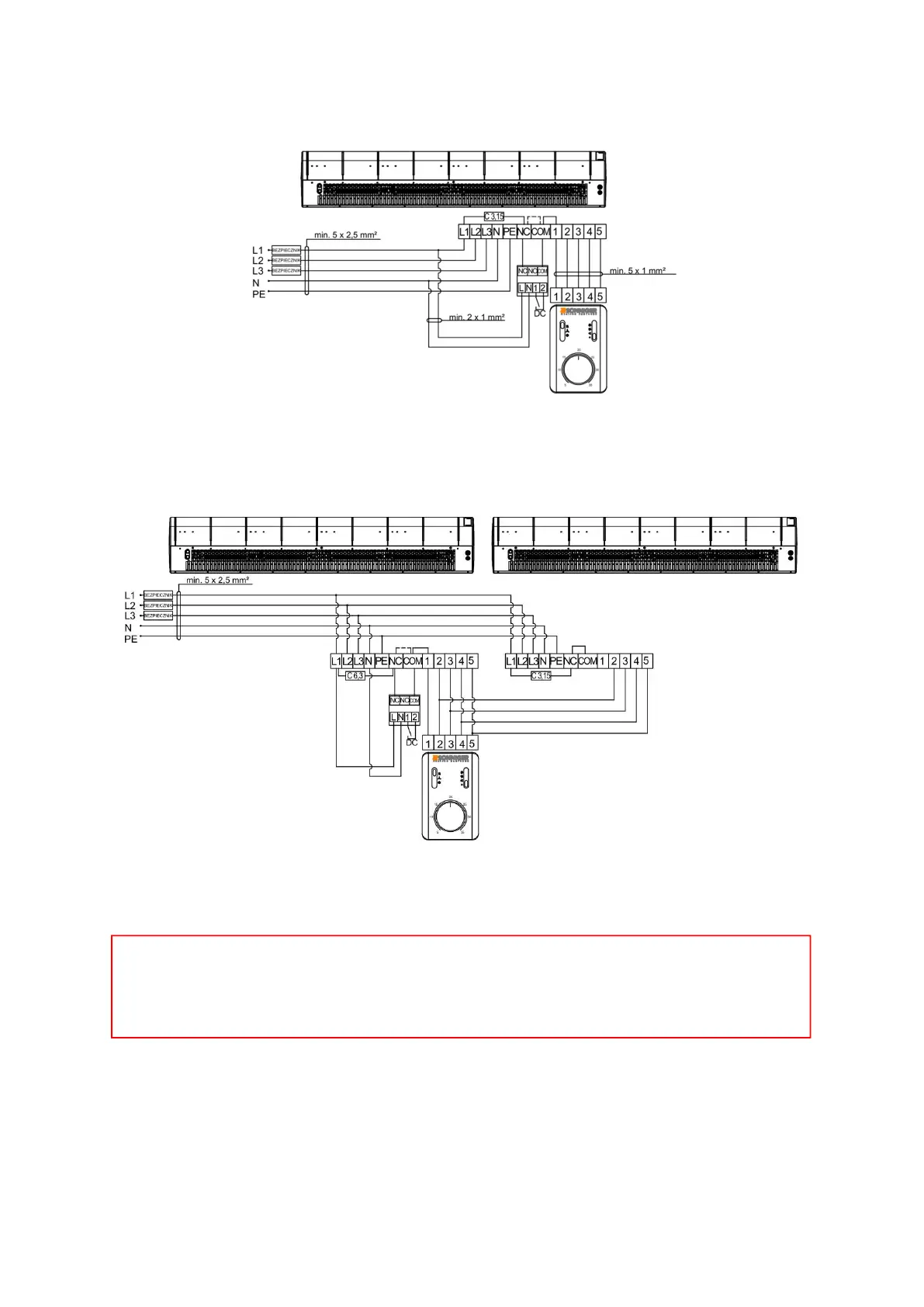 Схема подключения двух завес GUARD 100-150-200 E (электронагреватель) к одной панели управления