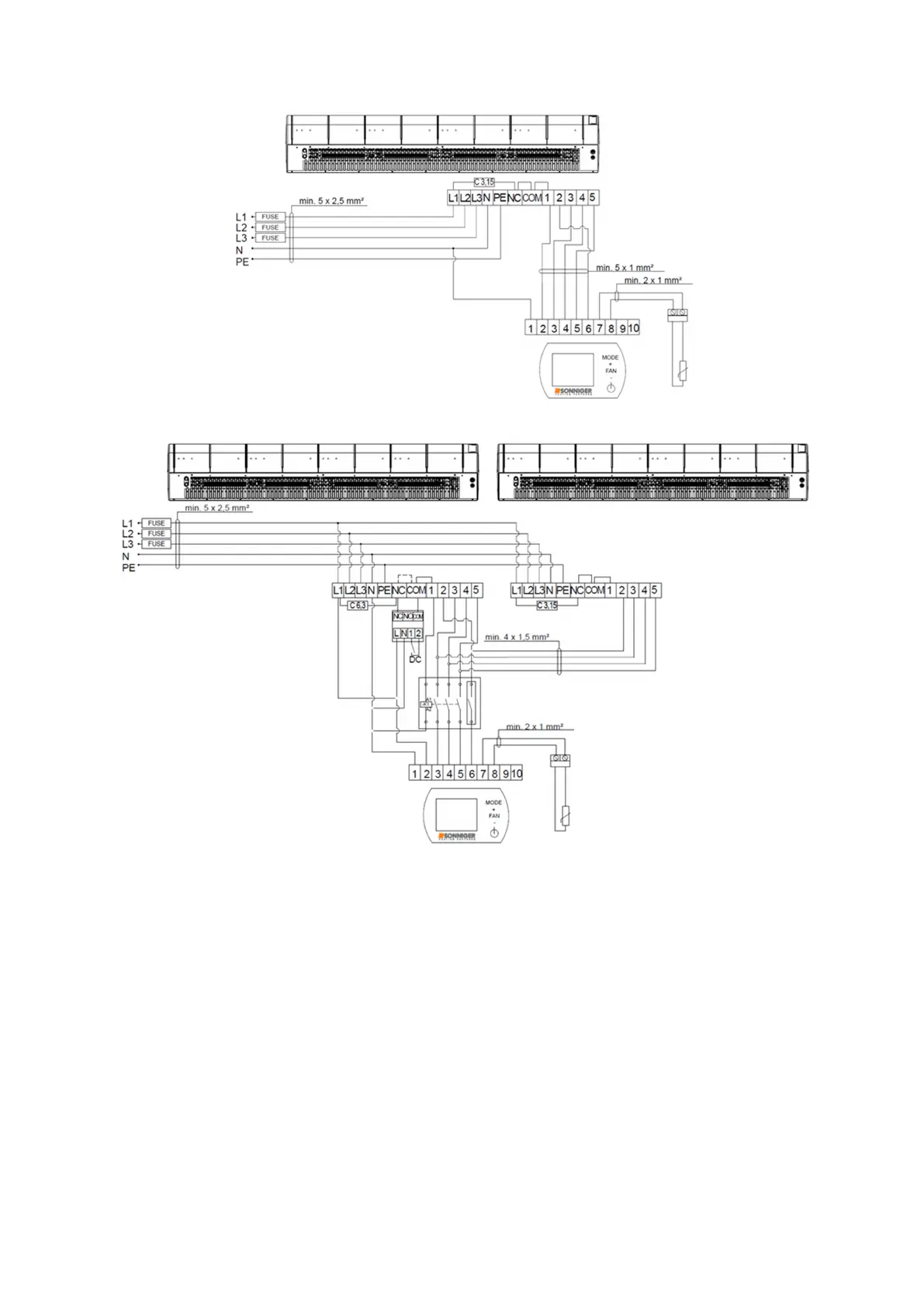 8.8. Schéma připojení dvou clon GUARD 100-150-200 E (elektrický ohřívač) k panelu INTELLIGENT