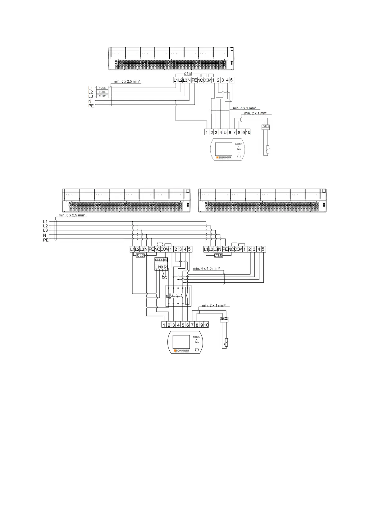 8.8 Schéma pripojenia dvoch clôn GUARD 100-150-200 E (elektrický ohrievač) k panelu INTELLIGENT