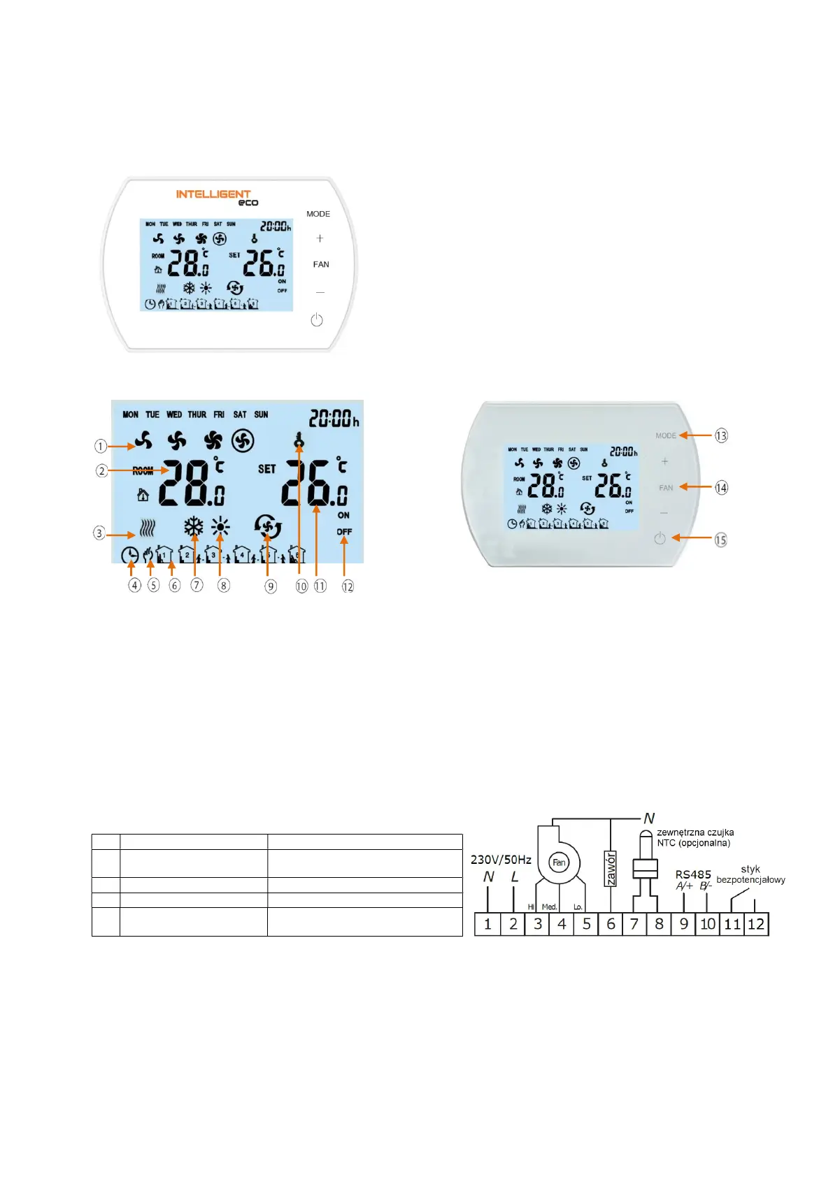 1 - Prędkość pracy wentylatora: bieg 1, 2, 3 lub automatyczny