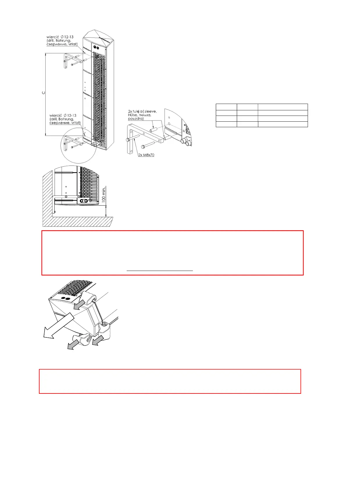 Der Abstand des Gerätes muss mindestens 100 mm vom Boden sein.
