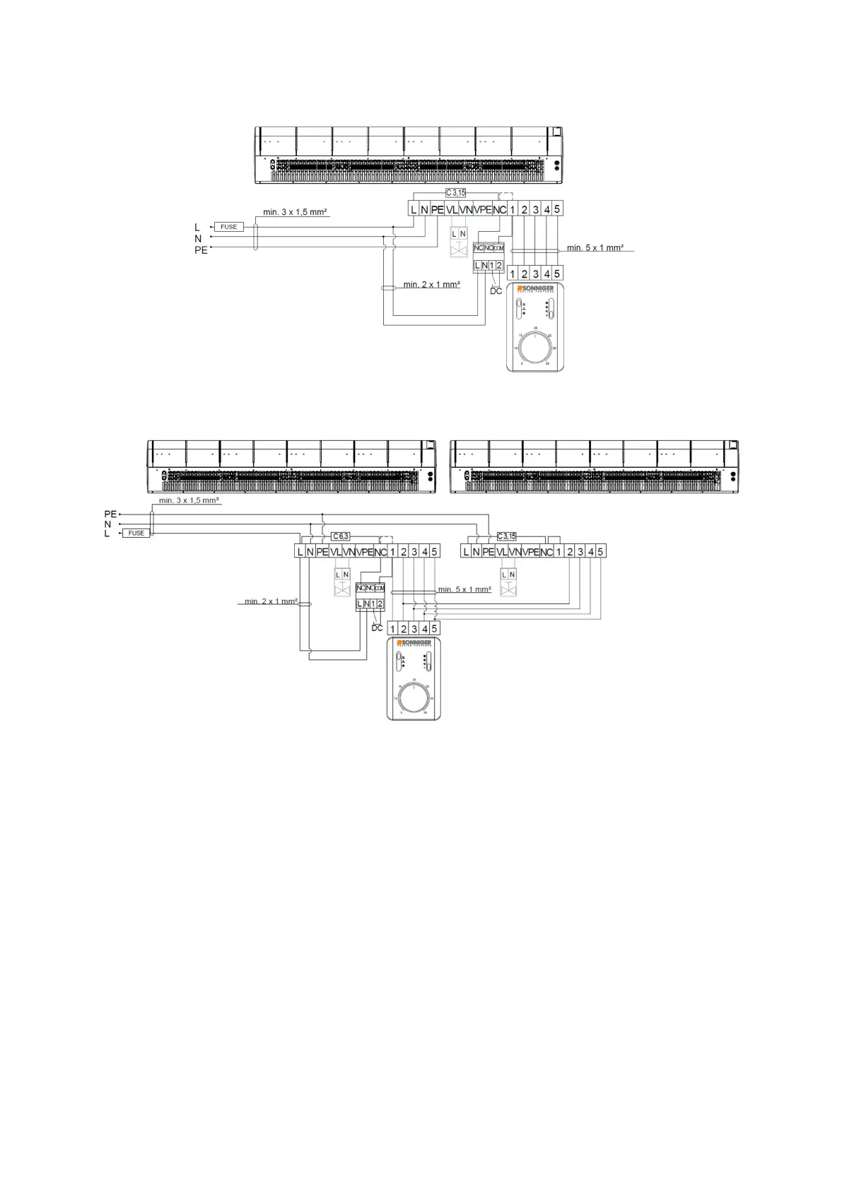 8.1. Schaltplan für Verbindung von einem Türluftschleier GUARD 100-150-200 W (Luftschleier mit