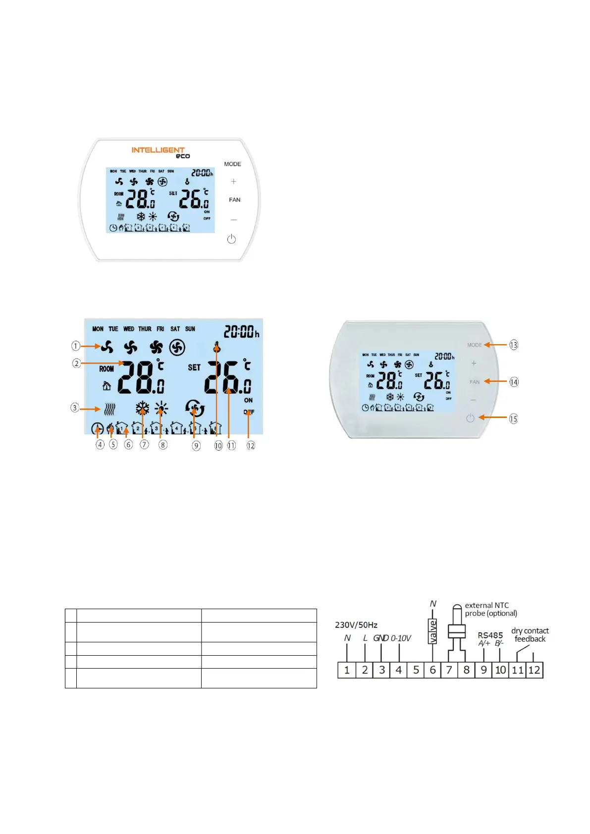 2. T°C ambiante ou T°C du capteur externe NTC (température