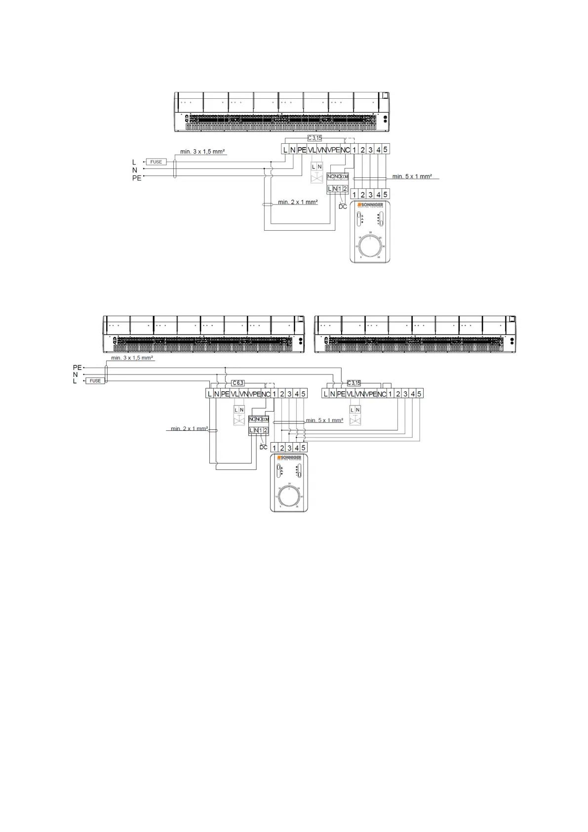 8.2 Diagram of connecting two GUARD 100-150-200 W (water heater) and C (without heater) to one COMFORT panel