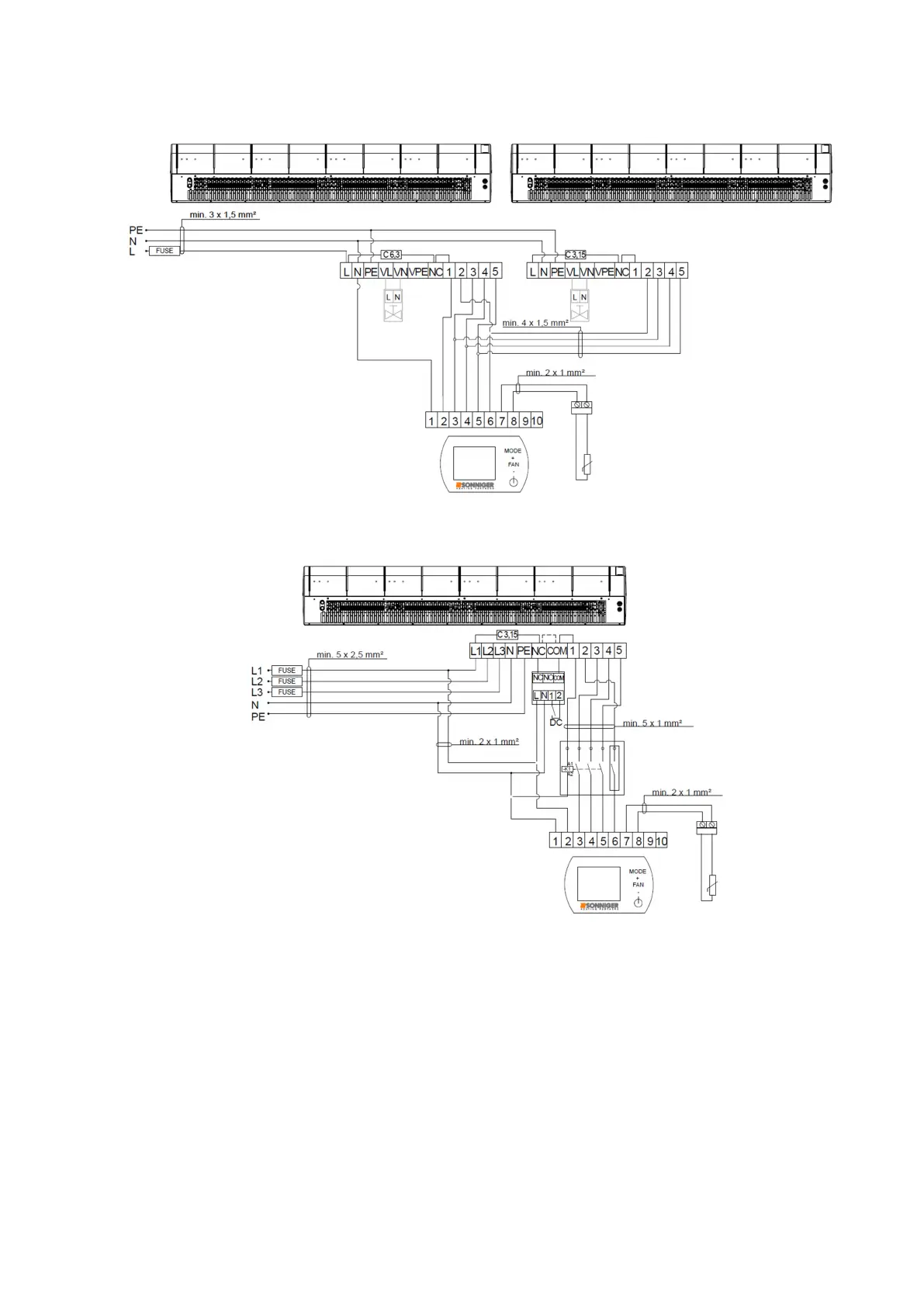 Si se conectan dos cortinas a un panel de control INTELLIGENT, es necesario sustituir el fusible de la cortina 1 por C 6,3 (en el