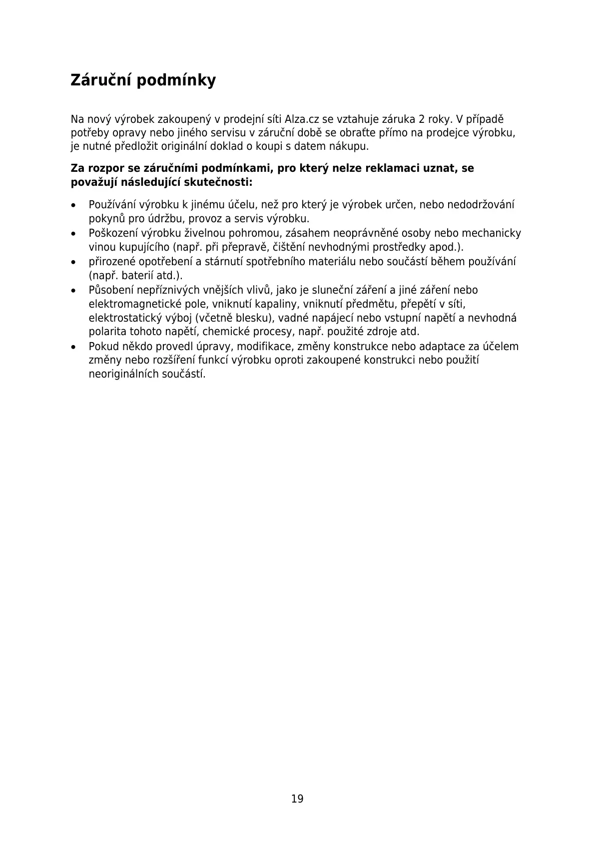 Na nový výrobek zakoupený v prodejní síti Alza.cz se vztahuje záruka 2 roky. V případě