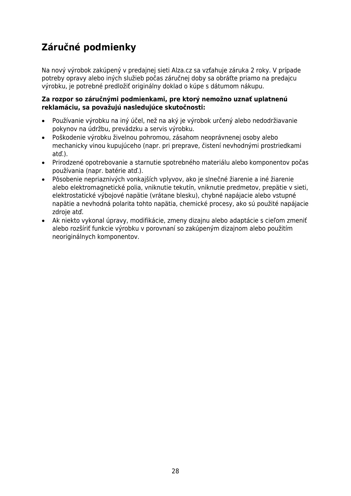 Na nový výrobok zakúpený v predajnej sieti Alza.cz sa vzťahuje záruka 2 roky. V prípade