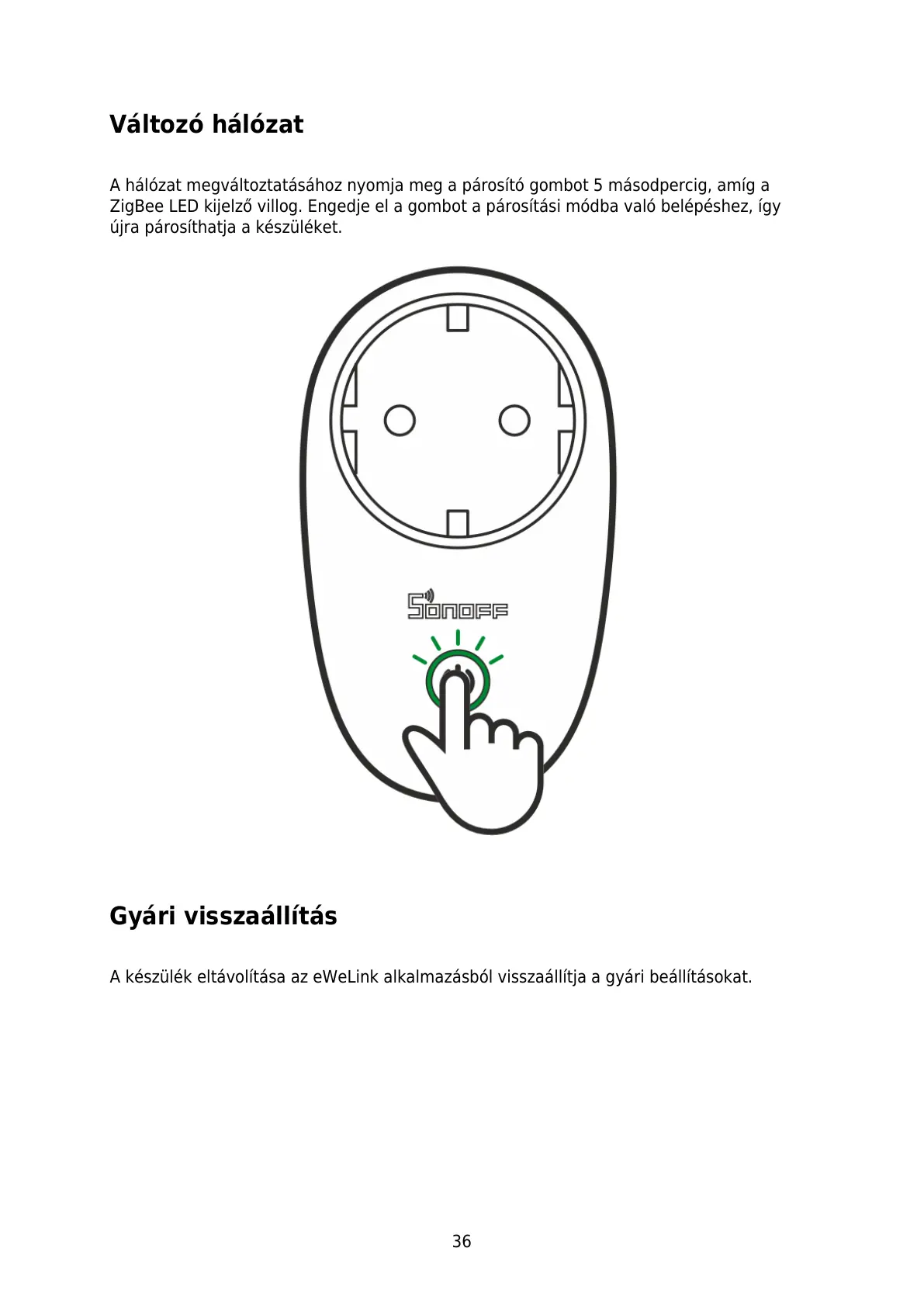 ZigBee LED kijelző villog. Engedje el a gombot a párosítási módba való belépéshez, így