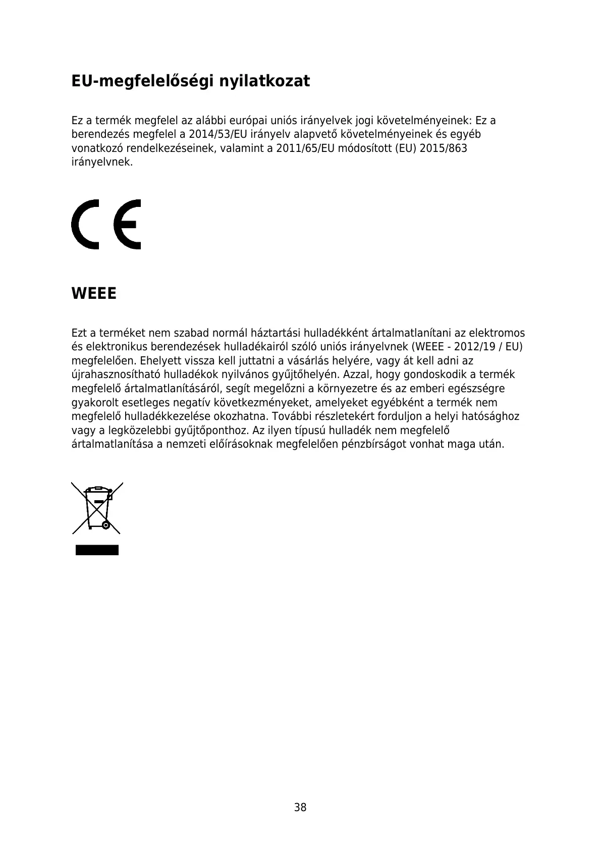 Ezt a terméket nem szabad normál háztartási hulladékként ártalmatlanítani az elektromos