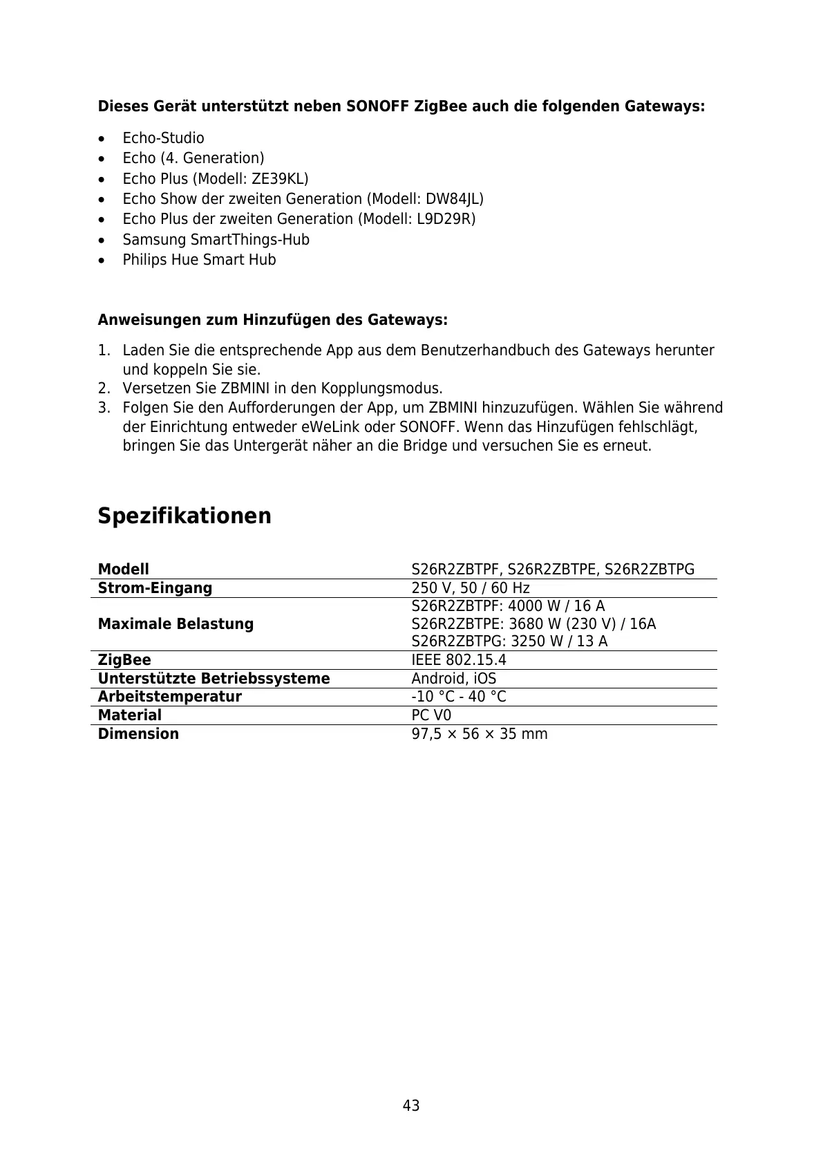 Dieses Gerät unterstützt neben SONOFF ZigBee auch die folgenden Gateways: