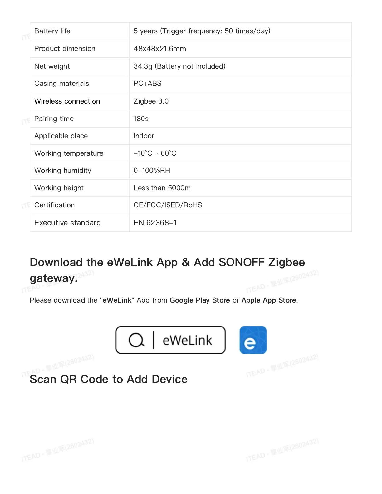 Battery life 5 years (Trigger frequency: 50 times/day)