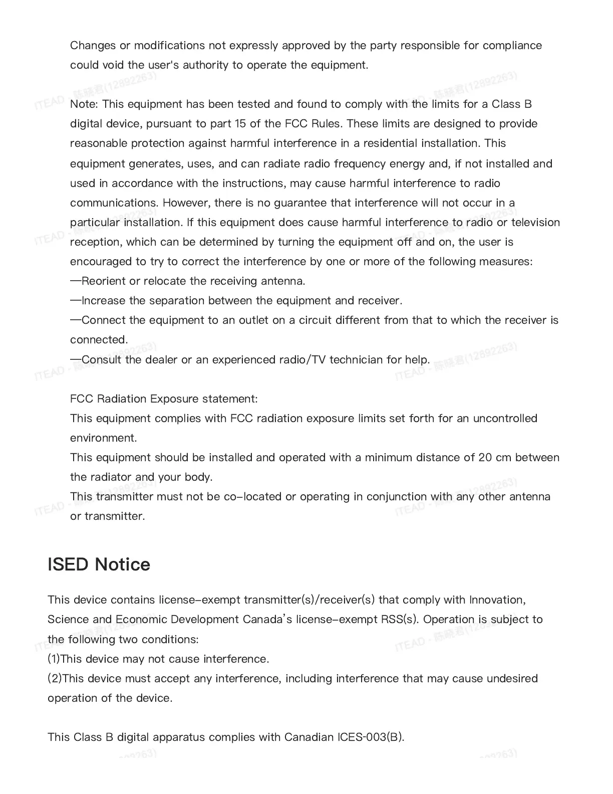 ISED Notice