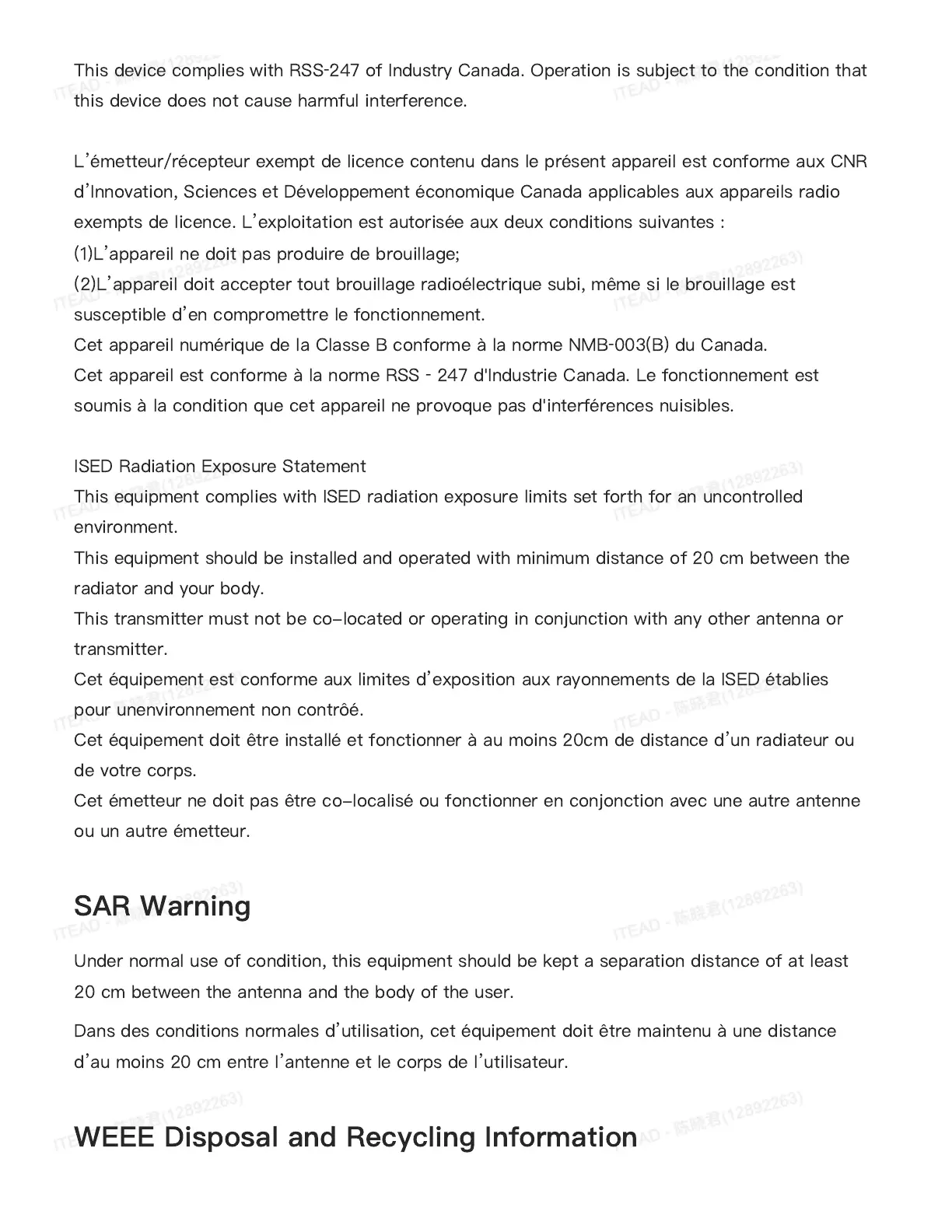 ISED Radiation Exposure Statement
