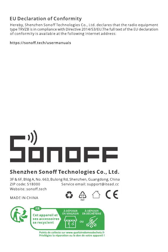 Hereby, Shenzhen Sonoff Technologies Co., Ltd. declares that the radio equipment