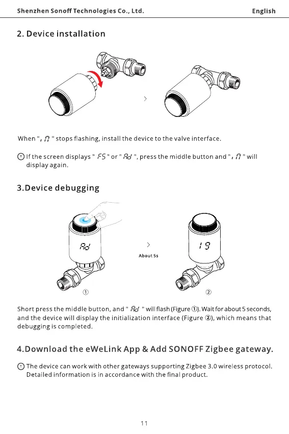 When 17" Stops flashing, install the device to the valve interface.