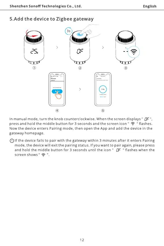 Olf the devicefails to pair with the gateway within 3 minutes after it enters Pairing
