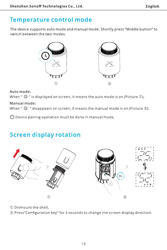 The device supports auto mode and manual mode. Shortly press "Middle button" to