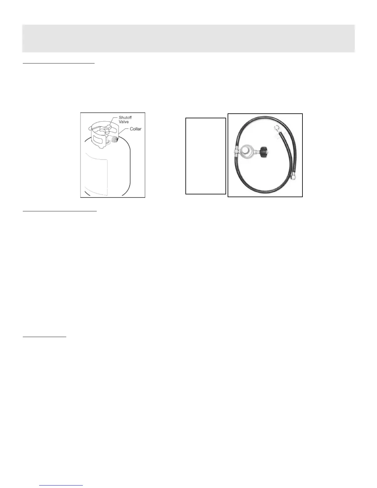 • The regulator and hose assembly must be inspected before each use of the grill. If there is excessive abrasion