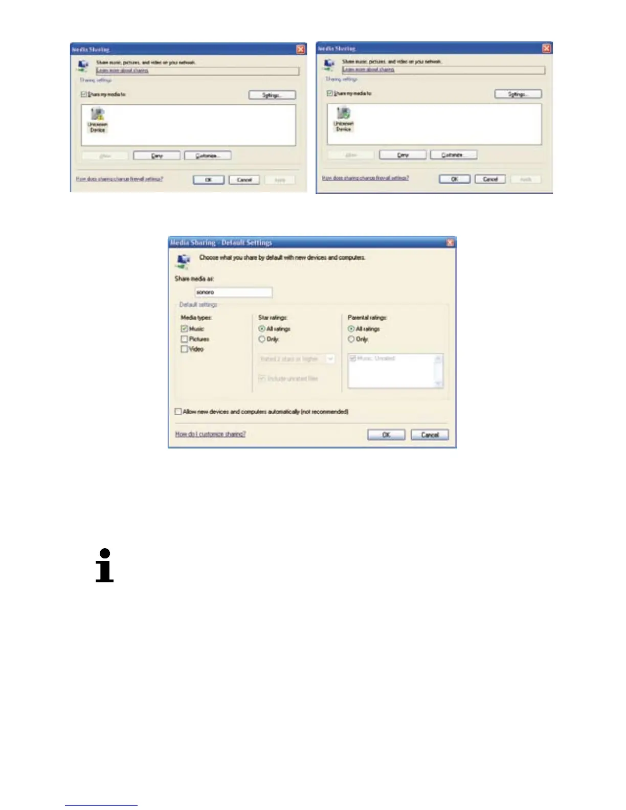 If a PC with Windows Media Player sharing is found, the available directories will appear. •