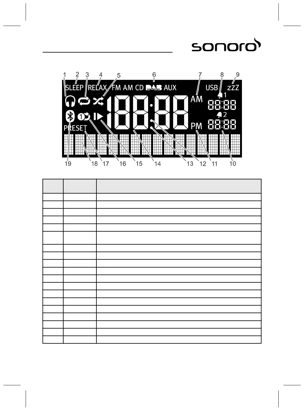 18 Untere Anzeige Anzeige für Datum, Menüs, Frequenzen etc.
