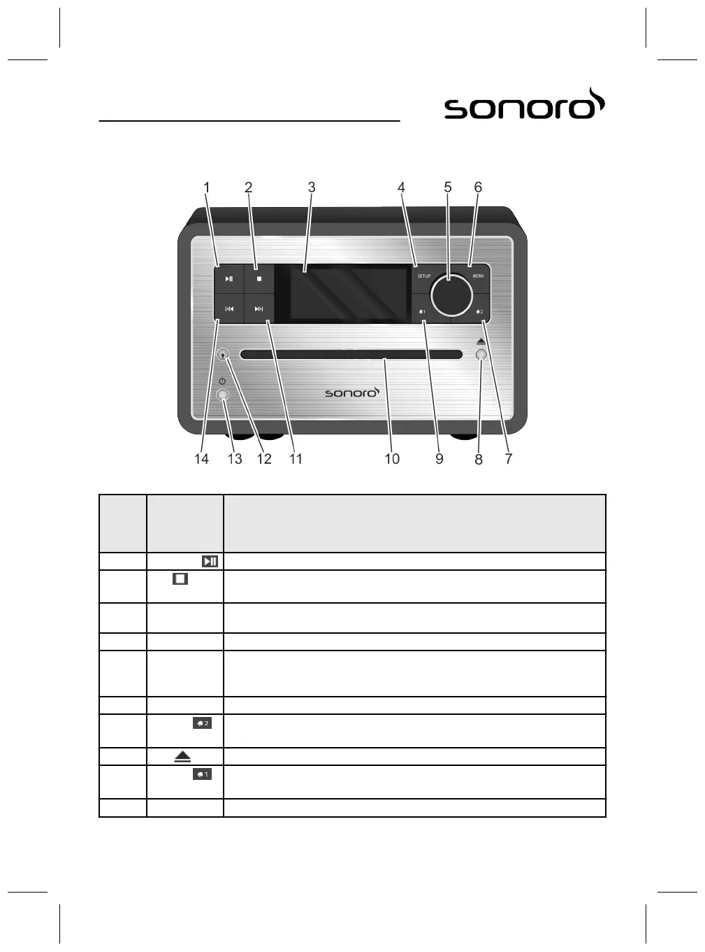 1 Play/Pause CD/USB/Relax : démarrer/stopper la lecture.