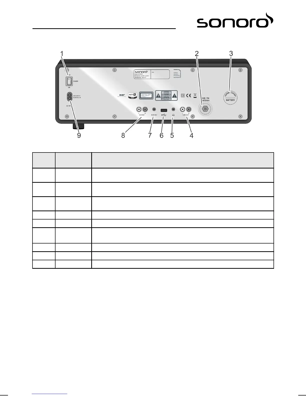 7 AUX IN 2 Anschluss für externe Audio-Geräte (3.5 mm Klinke).