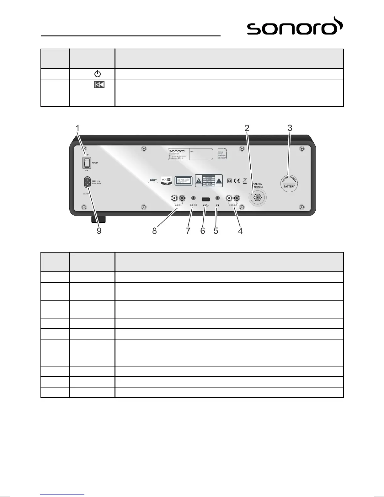 7 AUX IN 2 Collegamento per apparecchi audio esterni (jack da 3,5 mm).