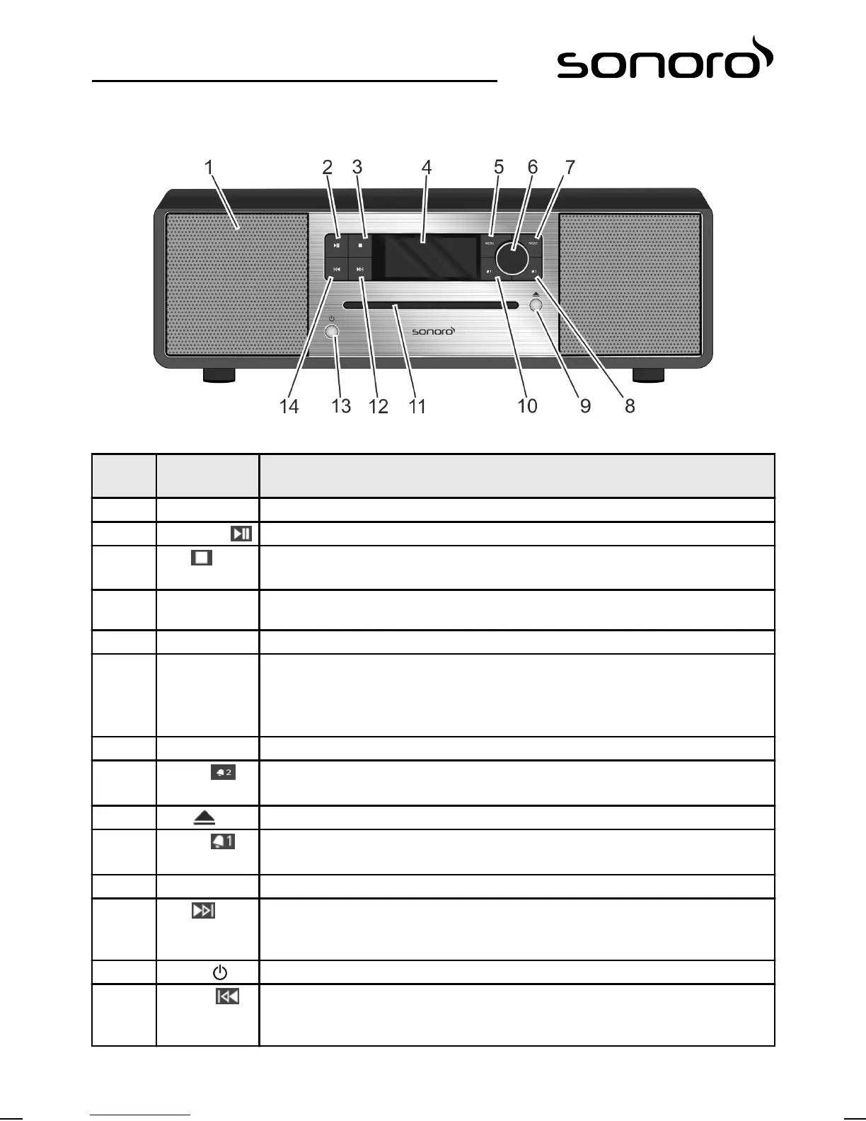 11 CD slot Loads CD when the device is switched on or in Standby mode.