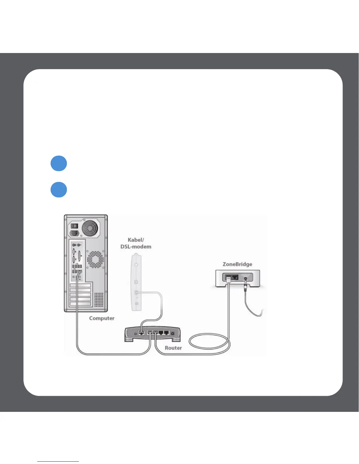 Sluit de ZoneBridge aan de hand van de onderstaande stappen op uw thuisnetwerk