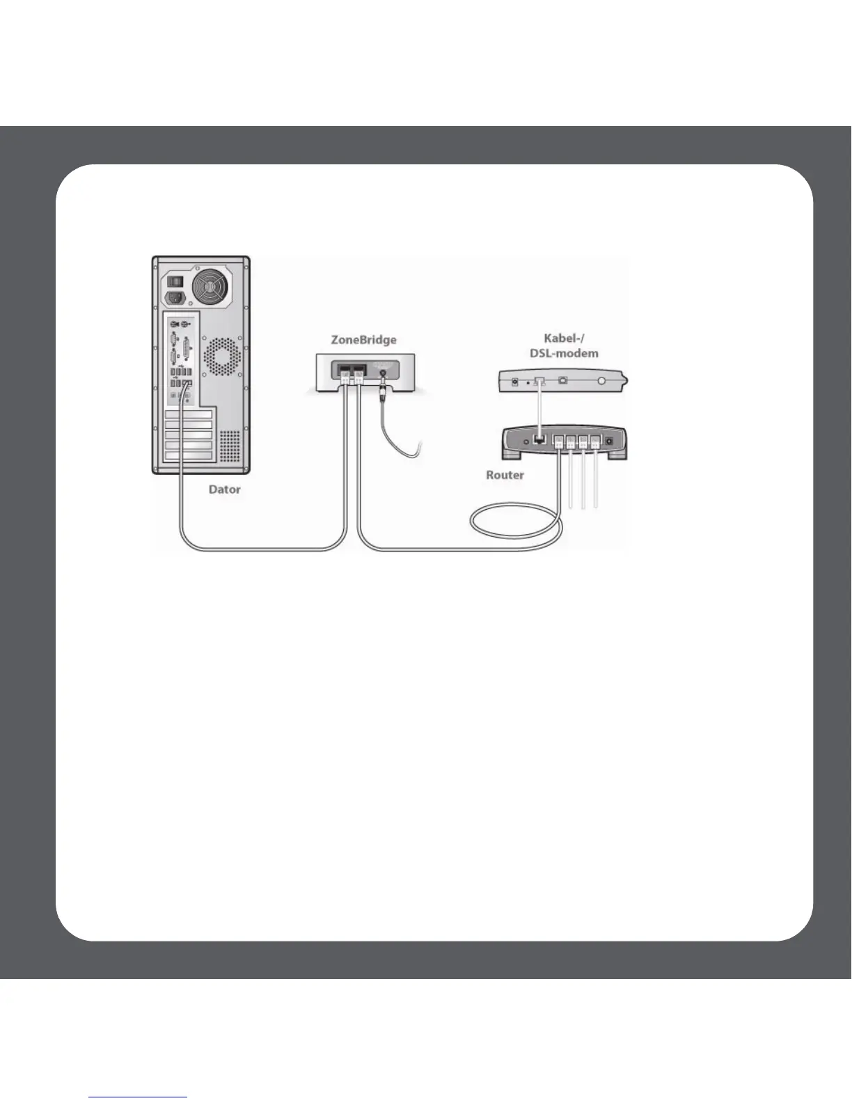 • Anslut en Ethernet-kabel från datorn direkt till baksidan på Zone-Bridge, och