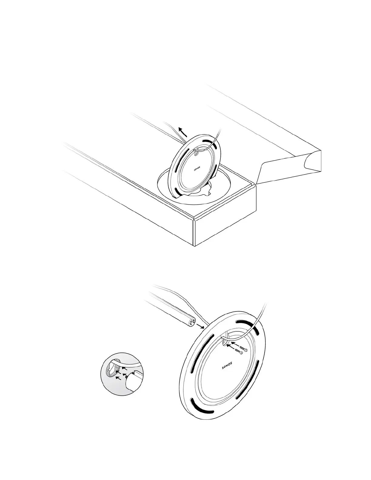 steps. Unplug your Sonos speaker, and thread the speaker end of the power cord through the opening in