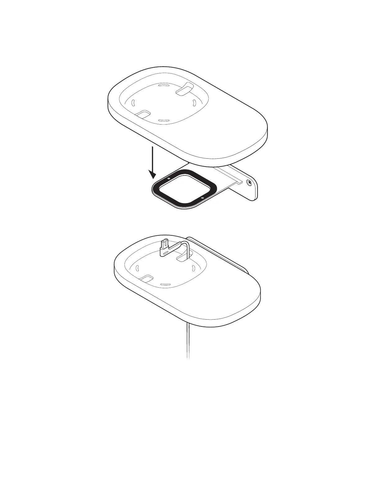 4. Position the shelf the way you want it (supports left or right speaker placement). Press the shelf firmly on to