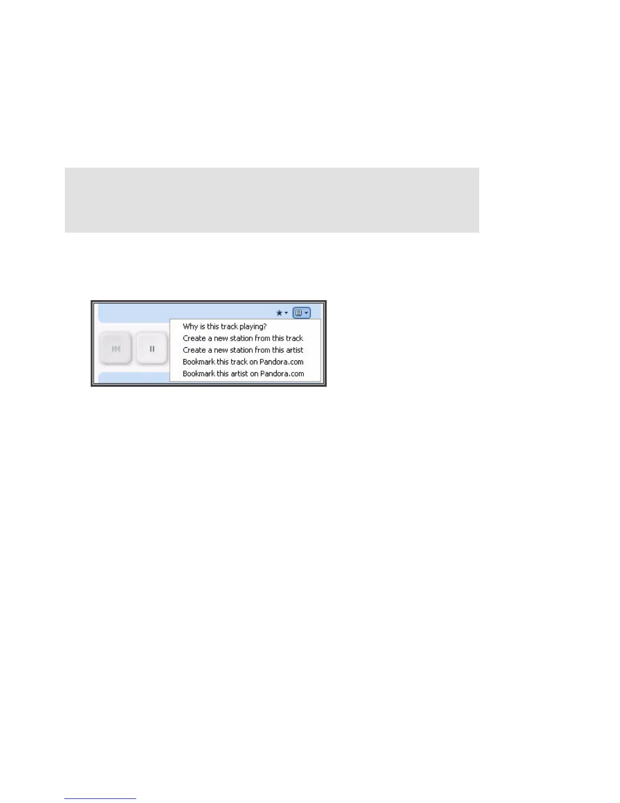 1. From the Now Playing window, click the Pandora menu.