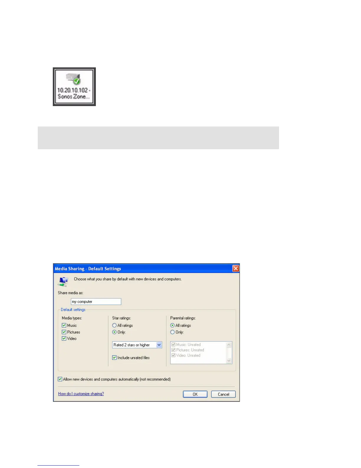 Note: If you do not allow media sharing on all ZonePlayers, those ZonePlayers