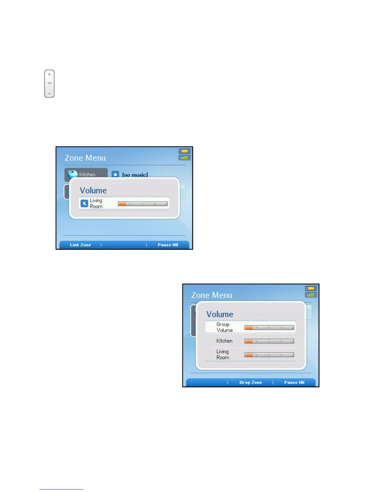 Increases (+) or decreases (-) the volume in any zone, or across a zone