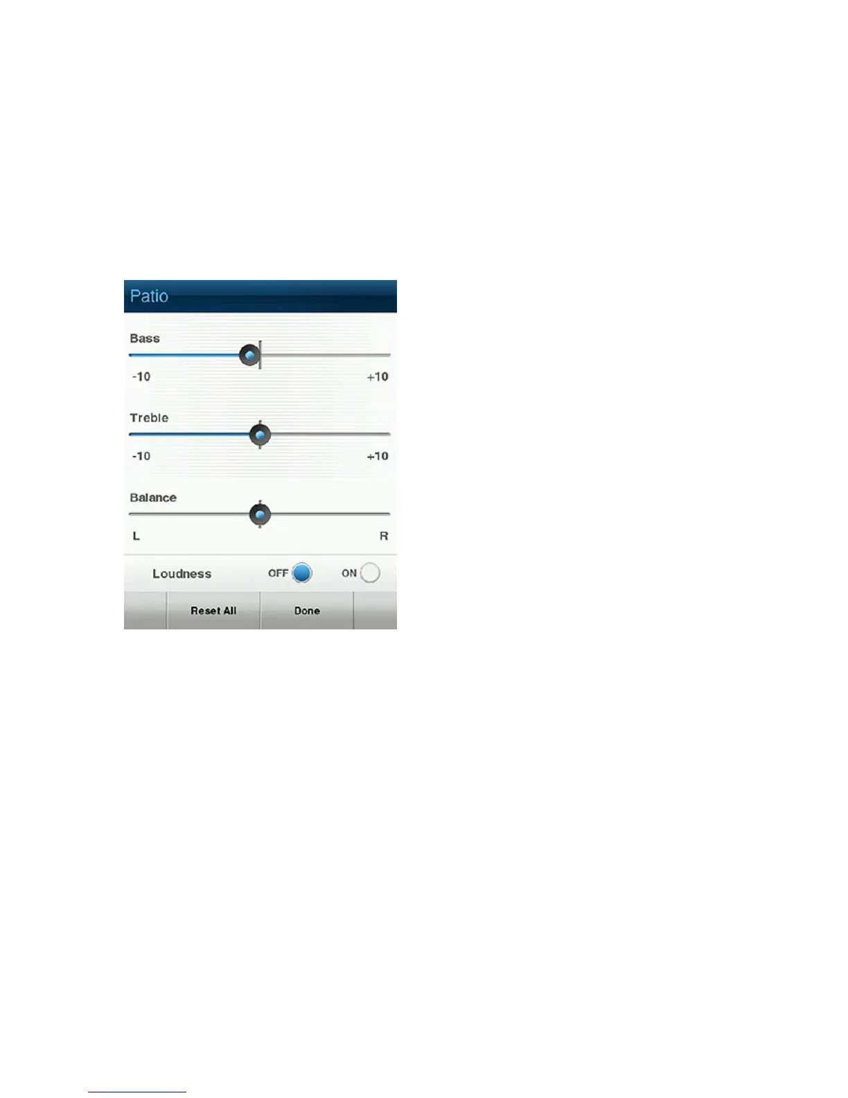 • To change the Loudness setting, tap On or Off.